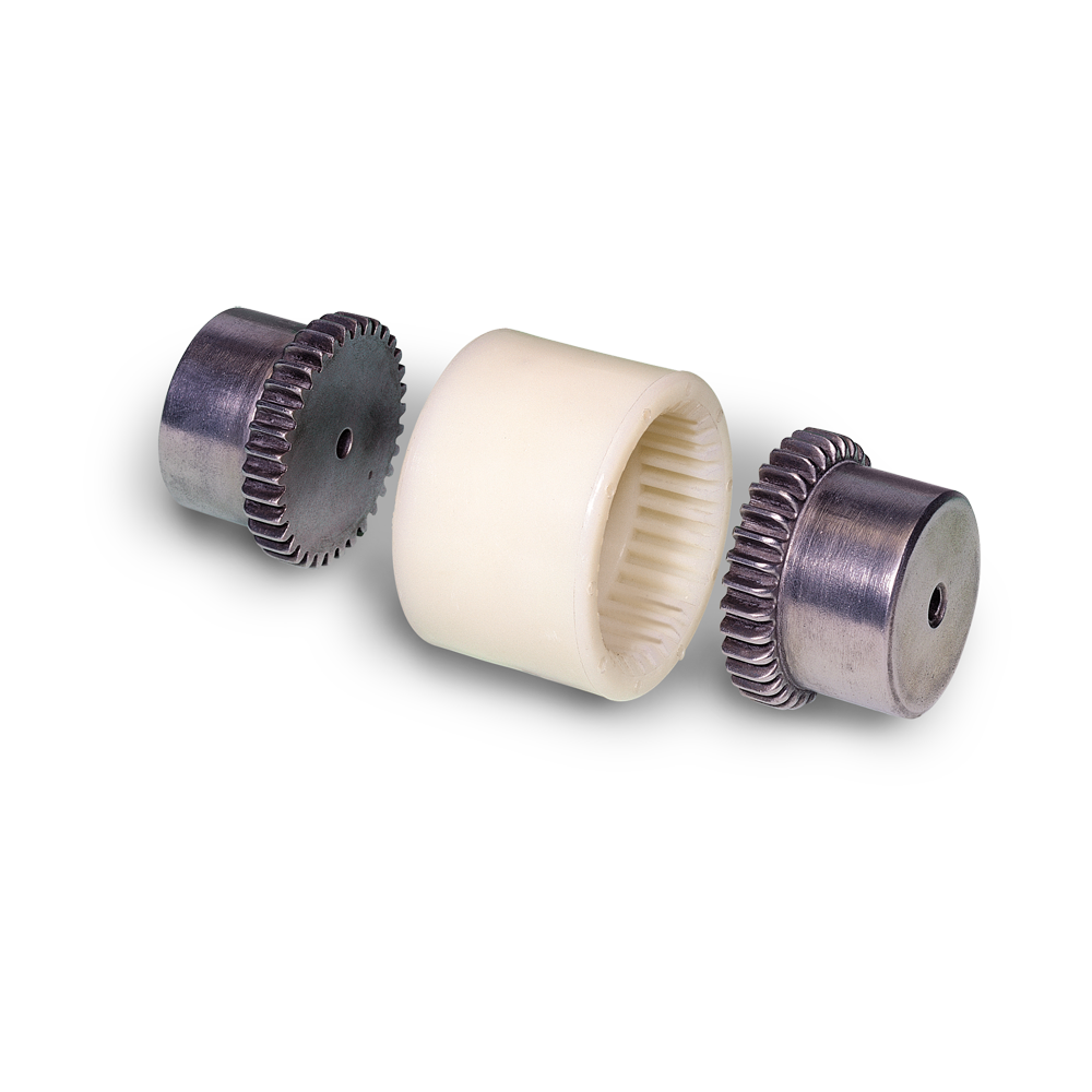 Compogear è un giunto a doppia articolazione con mozzi in acciaio sinterizzato con dentatura bombata e slitta autolubrificante in poliamide dentata interamente.